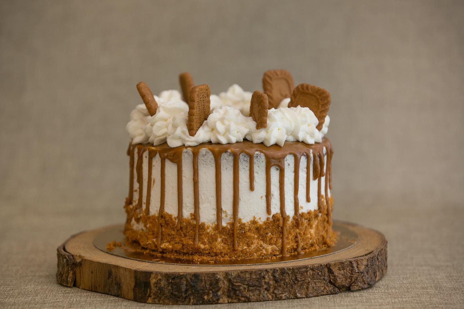Bizcocho esponjoso relleno de nata pura y crema de Lotus. Todo un espectáculo.